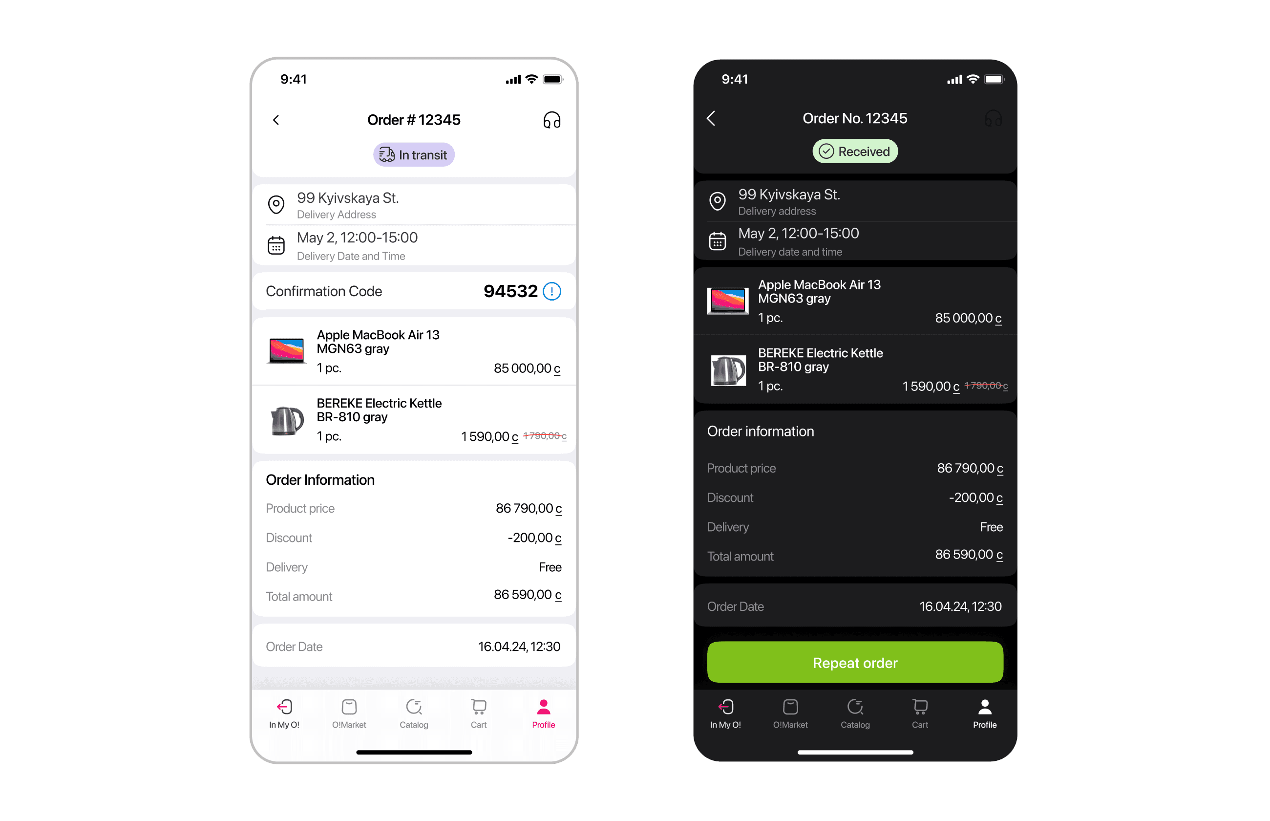 I also revised order details screen: made confirmation code bigger and the whole screen more consistent and structured.