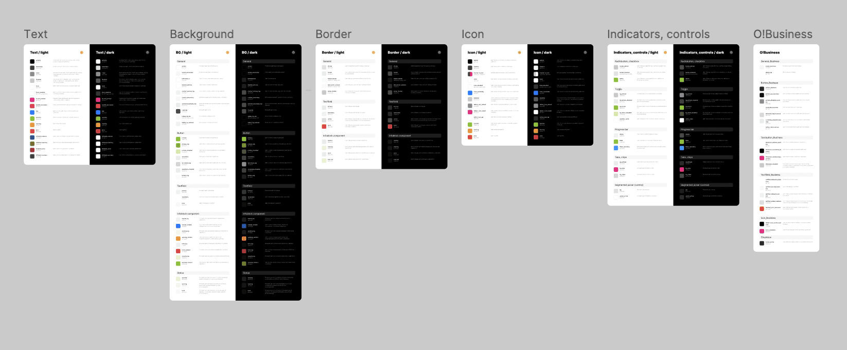 I also created the color tokens' system that helps to switch the different modes quickly and preserves consistency among all files and screens.